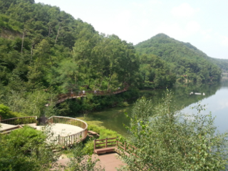 진천 가볼만한곳 베스트 10 여덟 번째! 초평호반 한 가운데를 가로질러 걸어볼 수 있는 다리가 하늘다리이다. 아름다운 주변 풍광을 돌아보면서 약간씩 출렁거리는 다리를 건너보는 아찔한 묘미를 지니고 있는 이곳은 남녀노소 누구든지에게 즐거운 진천의 대표적 관광명소가 되고 있다.