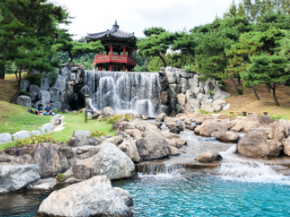 김천 가볼만한곳 베스트 10 일곱 번째! 많은 조각작품과 시비가 곳곳에 있어서 야외 전시장의 모습을 갖추고 있다. 원형분수가 음악에 맞춰 화려한 분수쇼를 선보이며, 2,000명이 동시에 관람할 수 있는 야외공연장에서 전통혼례식, 빗내농악공연 등 문화공연이 열린다.
