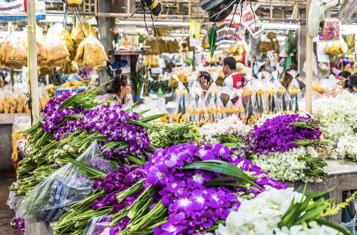 구시가지에 위치한 이 시장을 경험하기 가장 좋은 시간은 태국의 다른 지역에서 온 트럭과 카트가 도착하여 신선한 꽃 더미를 내리는 새벽 4시경이에요. 꽃시장을 그냥 돌아다니고 싶다면 아침 느지막이 방문해서 화환과 꽃 디스플레이를 만드는 수백 명의 상인들을 구경해보세요.