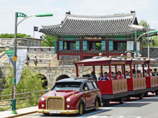 수원 가볼만한곳 베스트 10 두 번째! 화성어차는 수원화성의 주요 관광 포인트를 순환하는 관광열차로, 순종이 탔던 자동차와 조선시대 국왕의 가마를 모티브로 해서 제작되었다.
