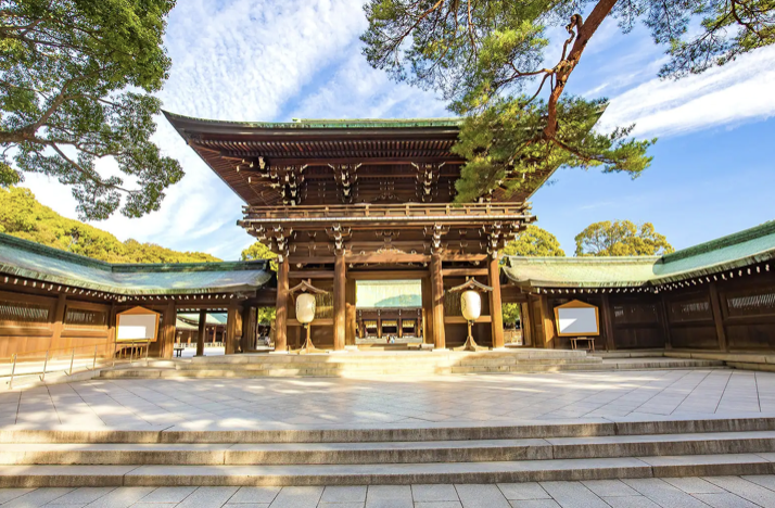 일본 도쿄 여행 사원 신사 가볼만한곳 관광 명소 추천 베스트 아홉 번째! 메이지 신궁은 일본에서 사람들이 가장 많이 찾는 신사로, 68만 제곱미터의 부지에 고요한 상록수 숲과 과거 왕족의 영혼을 기리는 기념물이 있어요. 1920년에 건립된 이 신사는 메이지 천황과 쇼켄 황후의 영을 기리기 위한 곳이에요.
