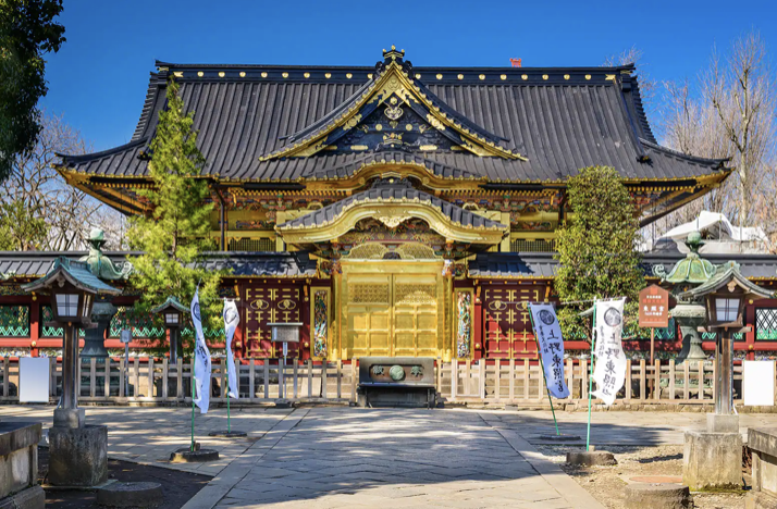 일본 도쿄 여행 사원 신사 가볼만한곳 관광 명소 추천 베스트 일곱 번째! 우에노 공원에 있는 도쇼구 신사는 1627년에 창건된 중요한 문화적, 영적 사적지로, 도쿠가와 막부의 시조인 도쿠가와 이에야스를 모신 곳이에요. 이 거대하고 정교한 신사는 금으로 화려하게 장식되어 있어 '황금의 신사'라는 별명까지 얻었어요.