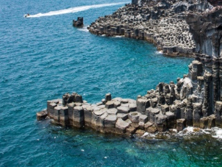 제주 중문 가볼만한곳 베스트 10 세 번째! 주상절리는 마치 예리한 조각칼로 섬세히 깎아낸 듯한 4~6각형 형태의 기둥으로, 현무암질의 용암류에 나타나는 수직절리를 말한다. 두꺼운 용암이 화구로부터 흘러나와 급격하게 식으면서 발생하는 수축작용의 결과로 형성되었다.
