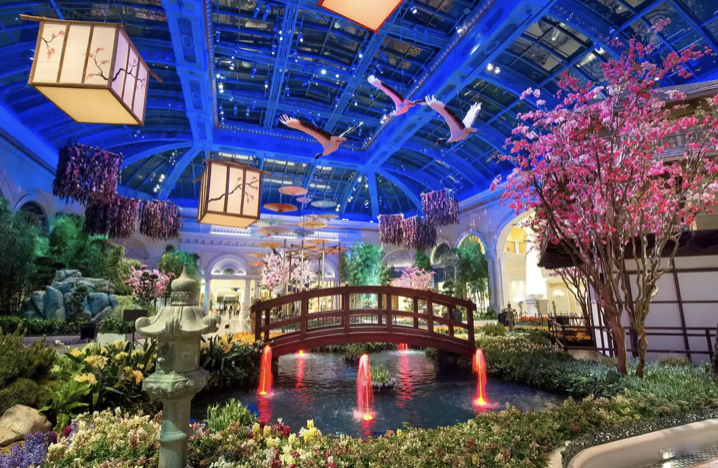 미국 여행 라스베이거스 즐길거리 볼거리 추천 베스트 여덟 번째! 라스베이거스의 대부분의 호텔에는 정원이 있지만 벨라지오는 규모가 아주 커요. 1,300제곱미터 규모의 온실과 식물원은 매년 5번씩 변경되며, 음력 설날, 봄, 여름, 가을, 겨울을 위한 특별 식물을 전시해요.