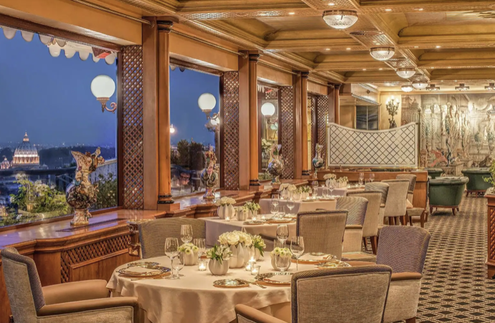 유럽 여행 이탈리아 로마 맛집 인기 레스토랑 추천 베스트 다섯 번째! 라 페르골라는 로마에서 처음으로 미슐랭 스타 3개를 받은 레스토랑이에요. 로마 카발리에리 호텔 최상층에 위치한 이 고급 레스토랑에서는 그 어느 곳보다 아름다운 로마의 풍경을 감상할 수 있어요. 어디에 시선을 두어도 눈이 즐겁죠. 요리도 마찬가지예요.