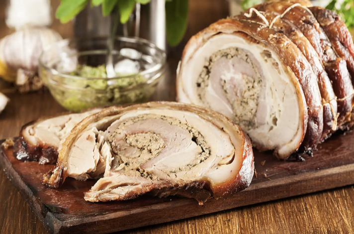 이탈리아 로마 맛집 미식 여행 현지 요리 먹거리 음식 추천 베스트 여섯 번째! 로마 사람들이 사랑하는 전통적인 구운 돼지고기인 포르체타는 8시간 동안 조리하여 아주 부드러워요. 고기에 간, 마늘, 로즈마리, 회향, 여러 허브로 속을 채운 다음, 장작불에 구워요.