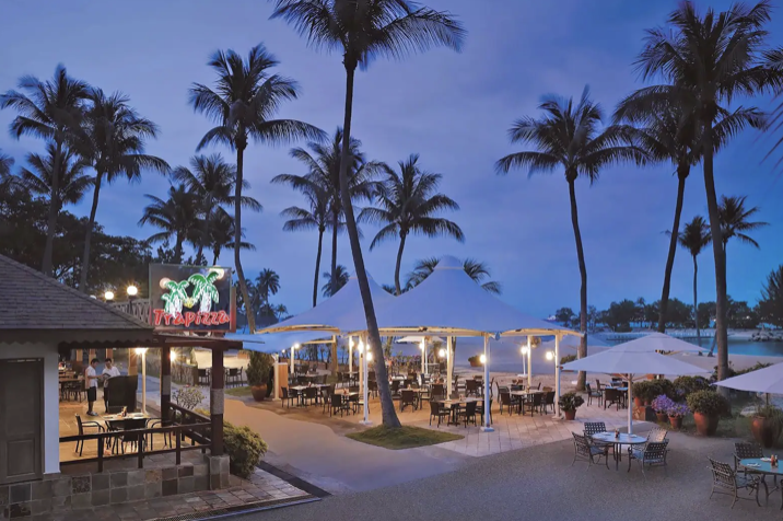 싱가포르 여행 센토사 섬 맛집 인기 레스토랑 추천 베스트 아홉 번째! 트라피자는 센토사의 이국적인 해변 전망을 보며 기분 좋은 이탈리아 요리를 맛볼 수 있는 곳이에요. 화려한 샹그릴라 라사 센토사 호텔의 실로사 해변에 위치한 이 캐주얼 레스토랑에서는 현장에서 직접 장작 오븐에서 구워낸 훌륭한 씬 크러스트 피자를 맛볼 수 있어요.