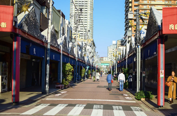 이자카야와 베이커리도 여러 곳이 있어 거리를 걸으며 배가 부르도록 군것질을 즐길 수 있어요. 레스토랑과 노점은 대개 밤 10시가 될 때까지 종일 영업해요. 이 번화한 골목길은 스미다 강과 가깝고, 오에도선 츠키시마 역에서 조금만 걸으면 나와요.