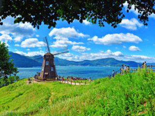 마을 안쪽으로 이어진 골목길은 관광객들의 즐거운 수다와 감탄사로 가득 차 있다. 바람의 언덕에는 네덜란드 풍차를 연상시키는 풍차 하나가 서 있으며, 언덕에 가까이 갈수록 탁 트인 바다가 펼쳐지고 바람이 시원하게 불어온다. '이름 참 잘 지었네'라는 말이 절로 나오고, 왜 바람의 언덕이라 하는지 실감하게 된다. 영국에 황량한 폭풍의 언덕이 있다면, 한국에는 아름답고, 넉넉한 바람의 언덕이 있다.