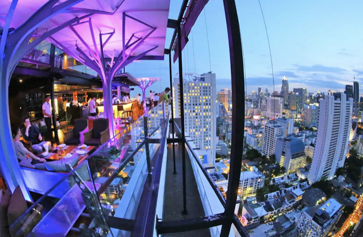 방콕에는 루프탑 바가 너무 많기 때문에 차별화가 중요해요. 위치가 약간 외지고 아파트먼트 건물에 입구가 있지만 46층에서 180도의 도시 전경을 감상할 수 있어서 가볼 만한 곳이죠.