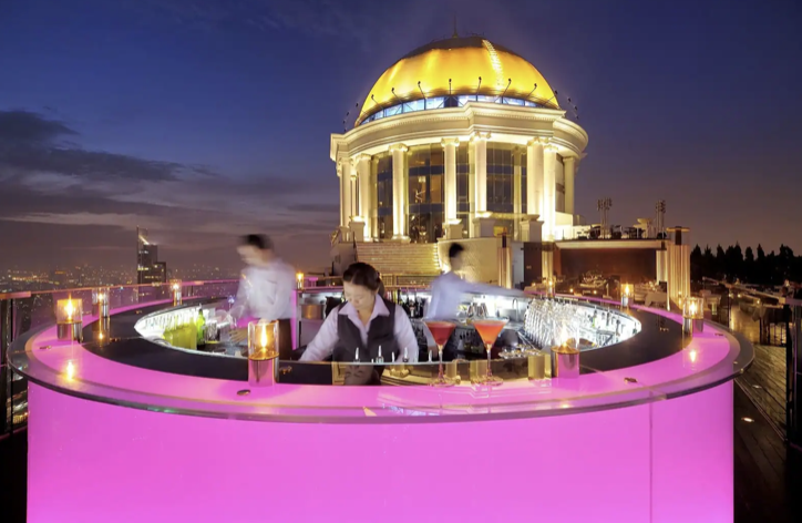태국 방콕 여행 루프탑 바 야경 선셋 일몰 핫플 전망대 명소 추천 베스트 여섯 번째! 방콕의 제트족과 교양 있는 여행객의 놀이터로 인기를 끈 이 세련된 재즈 라운지는 타의 추종을 불허하는 360도 전망으로 명성을 얻었어요. 술값은 적당한 편이고 흡연 구역이 따로 마련되어 있죠.