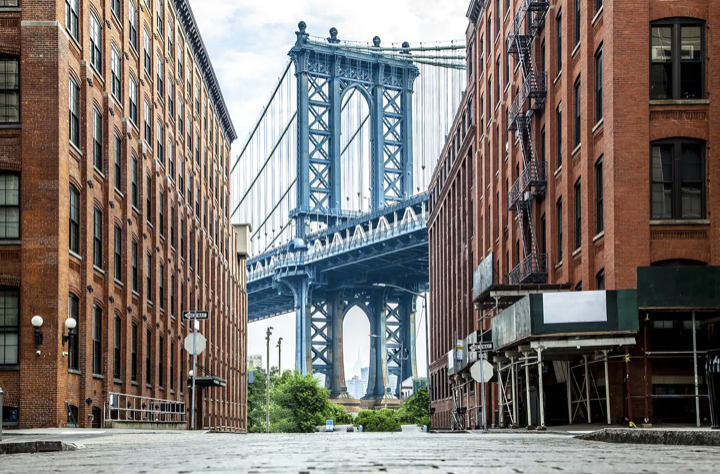 뉴욕 여행 인스타그램 명소 투어 가볼만한곳 추천 베스트 여섯 번째! 덤보 지역에서 만나는 워싱턴 거리와 워터 거리는 뉴욕에서 가장 사진 촬영지로 각광받는 명소예요. 독특한 자갈길과 고풍스러운 전망이 특징이죠. 붉은 벽돌 건물 앞에서 우뚝 솟은 맨해튼 다리와 강청색 프레임을 배경으로 셀카를 찍어 보세요.