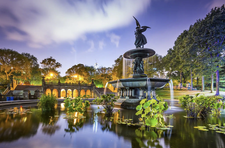 뉴욕 여행 인스타그램 명소 투어 가볼만한곳 추천 베스트 열 번째! 베데스다 테라스의 베데스다 분수는 '물의 천사'라는 상징적 조각상이 있고 그 주변으로 넓은 녹지가 펼쳐져 있어 사진을 찍기에 좋아요. 이 분수를 중심으로 하는 테라스에는 웅장한 계단과 테라스 드라이브 아래의 지하도가 특징이죠.