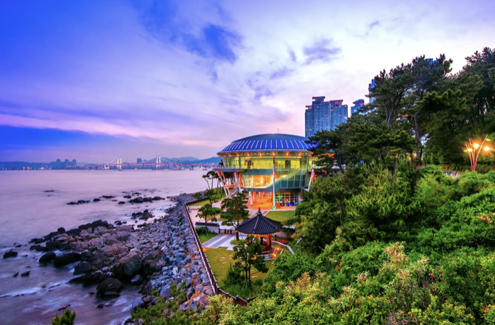 부산 여행 밤 야간 야경 볼거리 놀거리 관광 명소 추천 베스트 다섯 번째! 누리마루 마린시티는 13차 APEC 정상회담에 사용하기 위해 지은 건물로 당시에도 경관이 아름답기로 칭찬이 자자했어요.
