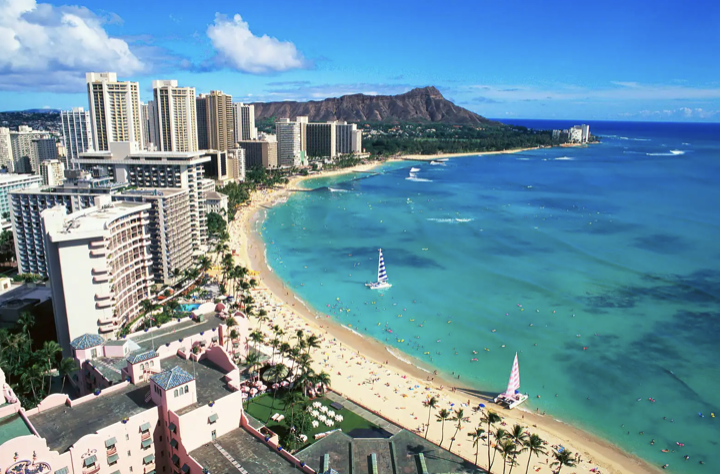 미국 호놀룰루 해변 비치 바다 서핑 스노클링 선셋 명소 휴양지 추천 베스트 여덟 번째! 와이키키는 전설적인 지위를 누리고 있는 세계에서 가장 잘 알려진 해변 중 하나예요. 하와이 관광은 거의 이곳에서 시작되었다고 볼 수 있죠.