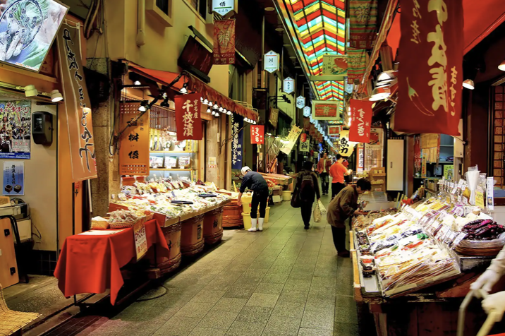 일본 교토 여행 쇼핑 명소 기념품 선물 리스트 추천 베스트 세 번째! 교토에 처음 방문하시는 분이라면 교토 주민들의 삶을 직접 볼 수 있는 니시키 시장에 꼭 방문해 보세요. 교토 주민들은 이곳을 '교토의 부엌'이라고 부르는데요. 사케, 두부, 생선, 일본식 채소 절임, 채소, 해초, 전통 과자, 완조리 식품, 주방용품, 칼 등 교토에서 직접 만든 다양한 상품을 구경하실 수 있죠.