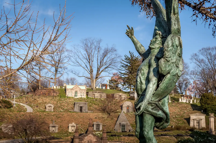 미국 뉴욕 여행 밤 야간 즐길거리 야경 명소 추천 베스트 두 번째! 그린우드 묘지는 유명인사의 무덤, 카타콤, 정교한 동상을 볼 수 있는 대규모 공동묘지예요.