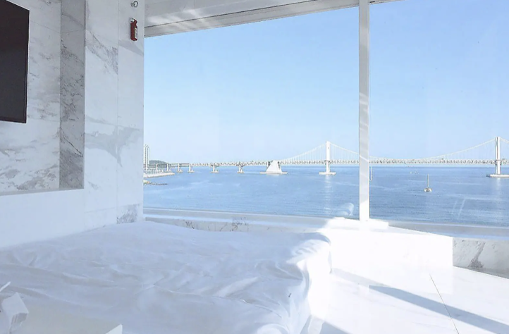 부산 여행 SNS 감성 숙소 호텔 추천 베스트 세 번째! 부산 광안리에 위치한 호텔 1은 창밖으로 탁 트인 광안리 해수욕장을 감상할 수 있는 호텔입니다. 하얀 대리석과 오션뷰가 만나 한 폭의 그림 안에 머무는 느낌을 받을 수 있는데요.