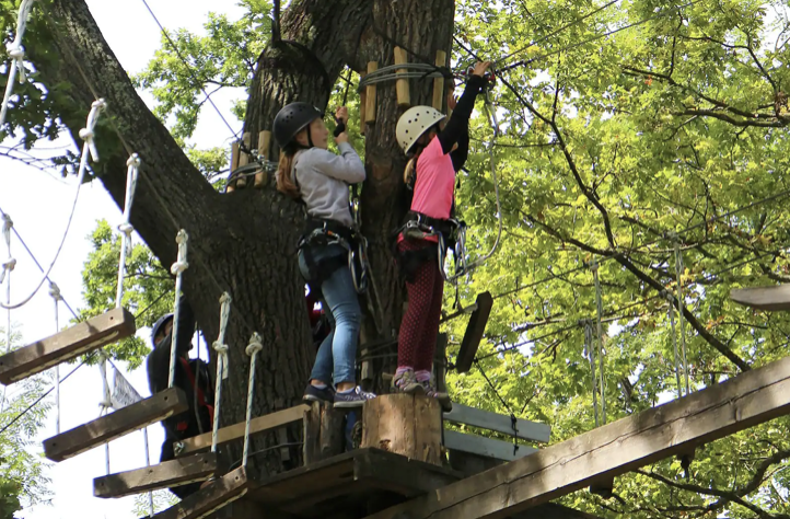 나무 트레킹의 기초를 가르치는 데 사용되는 2개의 코스가 있으며 6개의 다른 코스는 스릴 수준이 더 높아져요. 가장 도전적인 코스는 160m 길이의 집라인이 있어서 이름이 '아드레날린'이죠. 안전 제일: 모든 코스에는 구명 밧줄이 설치되어 있어요.