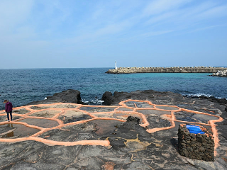 제주 애월읍 가볼만한곳 베스트 10 여덟 번째! 구엄리에서 시작하여 고내리 까지 '엄장해안길'이라는 해안누리길이 조성돼 있다. 구엄리의 포구를 지나면 만나는 구엄리 돌염전은 넓게 드러누운 현무암 위에 소금을 생산하던 곳이다.