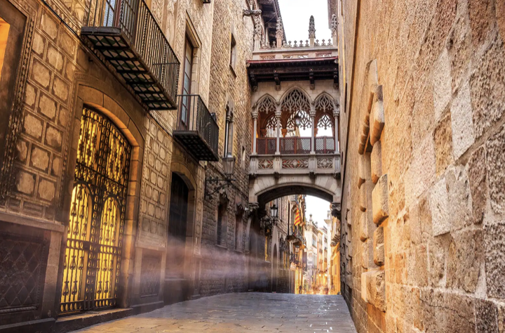 유럽 여행 스페인 바르셀로나 인기 거리 광장 관광 명소 핫플 추천 베스트 여섯 번째! 카레르 델 비스베는 바르셀로나에서 가장 잘 보존된 중세 거리예요. 이 좁은 골목은 고딕 바르셀로나 대성당 근처에 있으며, 전형적인 중세 건축물로 가득해요. 많은 관광객에게 이 거리의 하이라이트는 가장 상징적인 건물 2개를 연결하는 고딕 다리예요.