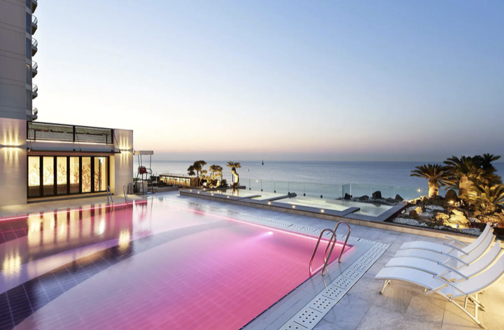 주변에 부산 아쿠아리움과 동백공원, 해운대 해수욕장과 달맞이 고개 등 주요 명소가 있어 관광하기도 좋은 위치에 자리해 있어요. 특히 탁 트인 하늘과 바다가 한눈에 들어오는 인피니티 풀은 인생샷 스팟으로도 손색없고 겨울에도 따뜻한 온천수가 나와 사계절 내내 즐길 수 있는 곳이랍니다.