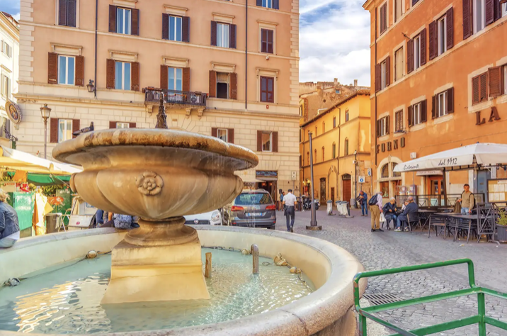 그중에서 100년 이상 변함없이 자리를 지키고 있는 건 매일 열리는 신선한 청과 및 수산 시장이에요. 라즈족 상인들과 오스티아 항구에서 온 어민들이 모이고, 주변 레스토랑의 열정적인 요리사들이 물건을 보러 찾아오죠. 신비주의자이자 철학자, 처음으로 지구가 태양을 돈다고 주장한 사람 중 하나인 조르다노 부르노의 기품 넘치는 조각상도 놓치지 마세요.