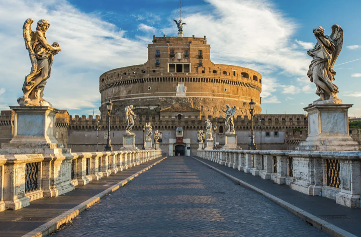 이탈리아 로마 여행 인스타그램 SNS 명소 핫플 추천 베스트 네 번째! 폰테 산탄젤로는 산탄젤로 성으로 이어지는 다리로, 티베르 강 너머에서 수없이 많은 멋진 사진을 남길 수 있어요. 이 고대의 다리는 로마 황제 하드리아누스의 명령에 따라 2세기에 완공되었고 오늘날에도 정교한 석조 기술의 본보기가 되죠.