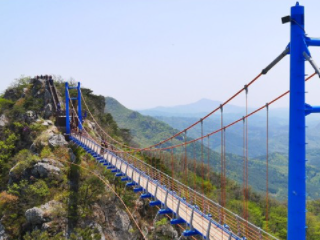 화순 가볼만한곳 베스트 10 세 번째! 산에 희끗희끗한 바위가 널려 있어 멀리서 보면 마치 흰 거위가 옹기종기 모여 있는 것처럼 보인다 하여 흰 거위산이란 뜻으로 '백아산'이라 부르게 되었다. 하늘다리는 백아산 756m 지점의 마당바위와 절터바위를 연결하는 연장 66m, 폭 1.2m의 산악현수교량이다. 다리 가운데에 강화유리 조망창(가로 40cm, 세로 1m) 3곳이 설치되어 하늘 위를 걷는 듯 짜릿한 스릴을 느낄 수 있다.