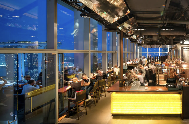싱가포르 여행코스 루프탑 바 야경 전망 뷰 명소 SNS 핫플 추천 베스트 세 번째! 레벨 33은 루프탑의 수제 맥주집인데요. 싱가포르 최고의 루프탑 바 중 하나로 꾸준한 명성을 쌓아 왔어요. 마리나 베이의 아름다운 전망과 맛있는 수제 생맥주 모두 상당히 감동적이랍니다. 알코올이 약한 페일 에일에서 진한 스타우트 흑맥주까지 양보다는 품질에 중점을 둡니다.