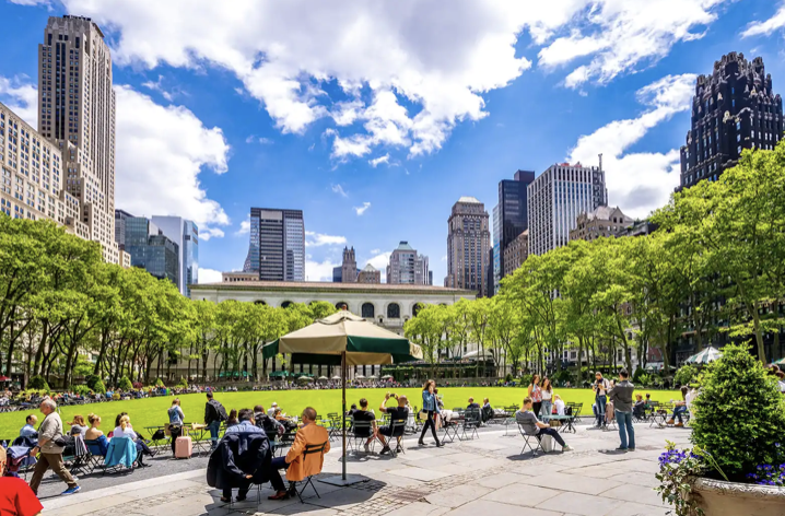 뉴욕 여행 공원 자연 산책 명소 가볼만한곳 추천 베스트 아홉 번째! 브라이언트 공원은 맨해튼의 주요 광장으로 여겨지는 활동의 중심지예요. 계절별로 다양한 활동을 할 수 있어서 따뜻할 땐 풀밭에 담요를 깔고 영화를 보고 겨울에는 스케이트를 타러 가고 연말에는 크리스마스 샵을 둘러볼 수 있죠.