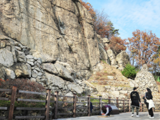 시흥 가볼만한곳 베스트 10 두 번째! 소래산은 여느 산과 달리 알맞은 경사와 적당한 바위 타기 그리고 산림욕장까지 갖추고 있다. 산의 중턱에는 고려 시대에 조성된 소래산 마애보살입상이 거대한 바위에 선각 되어 소래산 명물로 자리 잡고 있다. 정상에 오르기 전, 잠시 숨을 돌리고 뒤를 보면 시흥의 모습이 한눈에 들어온다.