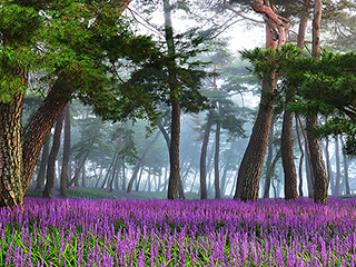 상주 가볼만한곳 베스트 10 네 번째! 상주시 화북면 상오리에 위치한 맥문동 솔숲은 속리산 자락 청정계곡을 따라 군락을 이룬 소나무숲 아래 보랏빛의 영롱한 빛깔을 뽐내며 전국의 사진작가와 화가, 관광객들의 마음을 사로잡는 관광명소이다. 주변에는 장각폭포와 용유계곡을 따라 산책로와 쉼터, 야영장 등 관광편의시설이 잘 조성되어 있어 여름철 피서와 휴양, 힐링을 즐기려는 관광객들의 발길이 이어지는 곳이다.