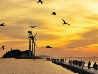 안산 가볼만한곳 여덟 번째! 안산시 대부도와 시흥시 오이도를 잇는 11.2km의 시화방조제 한복판 작은 가리섬에 세계 최대 조력발전소인 안산시화호조력발전소는 발전용량 254MW(수차10기), 배수갑문 8문(15.3m x 12m)으로 연간 발전량 552GWh의 전기를 생산할 수 있는 커다란 규모의 청정에너지 발전시설이다.