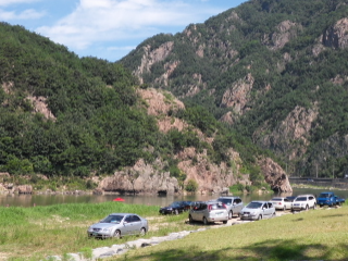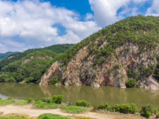 금산 가볼만한곳 베스트 10 첫 번째! 붉은색 바위벽을 뜻하는 적벽, 그 아래 적벽을 적시며 강이 흐르니 그 강의 이름을 '적벽강'이라 예부터 이름 짓고 풍광을 즐겼다. 30여 미터 높이의 깎아 지른 기암절벽 아래 도도히 흐르는 적벽강은 적벽과 마주보는 자리에 물놀이하기에 좋은 자갈밭이 넉넉하게 펼쳐져 있어서 여름에 이 강을 찾는 사람들이 많다.
