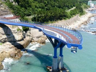 해운대 가볼만한곳 베스트 10 여섯 번째! 미포에서 출발해 송정까지 이어지는 동해남부선 폐선부지의 중간 쯤에 자리한 청사포 다릿돌전망대는 해수면으로부터 20m 높이에 72.5m 길이로 바다를 향해 쭉 뻗어 있으며 폭은 3~11.6m이다.
