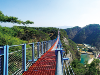 7월 강원도 여행 갈만한 곳 세 번째! 원주의 대표적 관광 콘텐츠인 소금산 출렁다리는 길이 200m, 높이100m, 폭 1.5m로 산악 보도교 중 국내 최장, 최고의 규모이다. 공중에서 느끼는 아찔함은 원주의 대표적인 관광지로 부족함이 없다. 출렁다리가 있는 소금산 암벽 봉우리 스카이워크 전망대에서는 섬강의 빼어난 풍광을 감상할 수 있다.