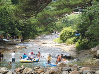 여름휴가 계곡 추천 베스트 10 여덟 번째! 명지계곡은 경기도내에서 두번째로 높은 명지산(1,267m)의 정상에서 동쪽으로 길게 흘러내려간 계곡이다. 계곡 입구인 명지산 주차장에는 매점, 손두부식당, 공중화장실, 민박집 등이 갖춰져 있다. 계곡에 들어서면 계류의 양도 풍부하고 맑은 데다 암반 위로 시원스레 흘러내리는 모양이 청량하기 그지없다.