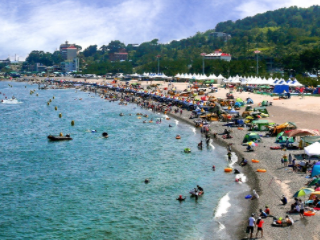 경주 여름 가볼만한곳 베스트 10 추천 여덟 번째! 감포항과 가까운 북쪽에 자리하고 있다. 모래가 부드러워 모래찜질이 유명하다. 1km의 백사장과 1.5m 안팎의 수심, 우거진 소나무 숲과 민물에 접해 있어 가족단위 캠프를 하는데 아주 좋다. 소나무숲에는 오류캠핑장이 조성되어 있어 카라반캠핑, 텐트캠핑이 가능하다. 피서철에는 바나나보트, 모터보트 등 해양레저 시설도 운영한다.