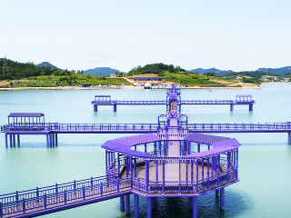 8월 전라도 여행지 추천 가볼만한곳 베스트 10 여섯 번째! 퍼플교는 신안국 안좌면 박지마을에서 평생 살아온 할머니의 소망이 담겨있는 다리이다. 할머니의 간절한 소원은 살아 생전 박지도 섬에서 목포까지 두발로 걸어가는 것이었다. 이후 2007년 신활력 사업으로 목교가 조성되었으며 반월, 박지도가 보라색 꽃과 농작물이 풍성한 사계절 꽃피는 1004섬의 의미로 퍼플교로 불리우게 되었다.