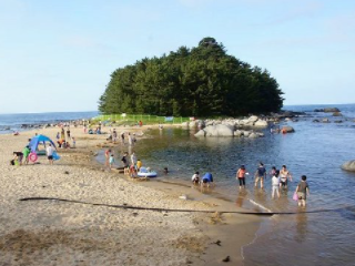 고성 해수욕장 추천 베스트 10 세 번째! 통일안보공원의 동쪽에 위치한 총 연장 400m의 조용한 해변에 희고 고운 백사장과 육지와 연결된 무송대라는 섬이 있어 천혜의 절경을 이루는 곳으로 매년 해변과 백사장이 사계절 운영된다.
