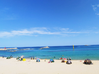 고성 해수욕장 추천 베스트 10 다섯 번째! 초생달 모양의 해안선으로 형성된 해변으로서 유영폭이 길고 수심이 낮아 어린이가 있는 가족단위 피서객이 즐길수 있는 곳이다.