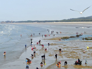 해수욕장에 넓은 갯벌이 있어 물이 빠지면 조개와 게 등을 잡으러 나가는 사람들의 발길이 잦으며, 모래언덕이 잘 발달되어 있어 아이와 함께하는 갯벌 체험 및 자연생물 관찰에 안성맞춤이다. 특히, 서쪽으로 1km 가량 이어지는 키가 큰 해송 터널 사이로 드라이브 삼아 가다 보면 몽대포구가 있어 여러 척들의 낚시배와 싱싱한 자연산 회를 저렴한 가격으로 즐길 수 있는 횟집들이 많이 있다.