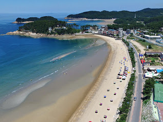 태안 해수욕장 추천 갈만한 곳 베스트 다섯 번째! 백사장길이 1km, 너비 200m, 면적 20ha, 경사 6˚, 안정수면거리 150m로, 태안반도 북쪽의 이원반도에 있는 아담하고 조용한 해수욕장이다. 예로부터 바다에서 모래가 많이 밀려와 모래층이 두텁고 고우며 해변 경관이 빼어나지만 이원반도에서도 북부권에 있어 잘 알려지지 않은 곳이다.