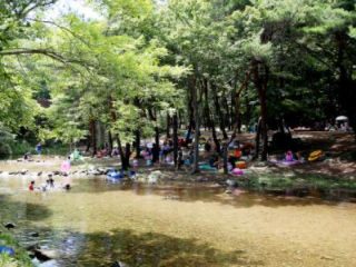 충남 계곡 갈만한 곳 추천 베스트 첫 번째! 흰구름 뭉실뭉실 피어오르는 소백산 능선 아래 시원한 계곡의 물소리가 청아하게 울려 퍼지는 곳이다. 소백산 깊은 산골의 물줄기가 모여들어 이루어졌다는 새밭계곡이다. 산의 맑은 기운을 타고 내려와서인지 물도 맑고 깨끗해 명경지수를 알아본 산천어는 어느새 이곳의 터줏대감이 되어 있고, 계곡 주위로는 울창한 수풀들이 우거져 한 폭의 산수화를 이루고 있다. 사람들 역시 천혜의 자연조건을 갖춘 명당자리를 모를 일이 없다.