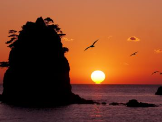 태안 여름 가볼만한곳 베스트 10 추천 열 번째! 할미, 할아비 바위를 배경으로 붉은 태양이 바다 속으로 빨려들어가며 빚어내는 황홀한 저녁놀 풍경은 서해안 최고의 낙조임에 틀림이 없다.