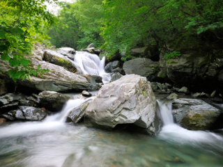 계곡 입구에는 3단 폭포가 있는데, 5m 정도의 폭포가 쏟아져 내리는 모습이 도로변에서도 보여, 차량으로 스치는 것만으로도 한여름의 더위를 식혀주는 듯하다.