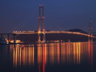 현수교 가운데 세계 최고의 높이를 자랑하고 있는 주탑 높이(270m)는 63빌딩보다 높으며, 주탑 간의 거리 1,545m는 충무공 이순신 장군 탄신해인 1545년을 기념을 하기 위한 것으로 웅장함과 탁 트여 있는 바다 전경이 일품이다. 특히 주탑과 주탑의 사이의 주경간장 길이는 일본의 아카시대교와 중국 시호우먼교 그리고 덴마크 그레이트 벨트교에 이어서 세계에서 4번째, 국내 최장을 자랑한다. 또 주탑의 높이는 서울 남산(262m)과 63빌딩(249m)보다 해발 270m로, 콘크리트 주탑으론 세계에서 가장 높다.