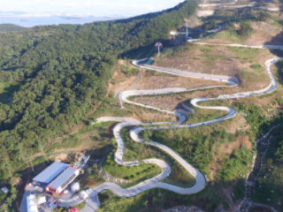 강화 메가 루지는 트랙의 경사와 중력만을 이용한 무동력 바퀴 썰매로 손쉽게 방향 조정과 제동이 가능해 남녀노소 누구나 즐길 수 있는 다이나믹하고 안전한 새로운 체험 레포츠이다.