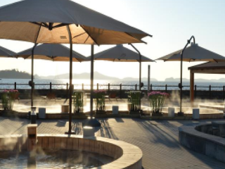 460m 화강암 등에서 용출하는 51℃의 고온이고 칼슘과 칼륨, 마그네슘, 스트론튬, 염화나트륨 등이 풍부하게 함유된 미네랄 온천수이다. 온천수 천연 그대로 사용으로 인위적 소독, 정화 없이 매일 온천수 원수로만 사용하는 곳이다. 자연친화적인 주변 환경을 고려하여 온천장 시설에는 신재생에너지(태양광, 지열)를 사용하였고, 해양성 해풍, 햇빛, 습기와 염분이 그대로 전해지는 위치에 있어 몸과 마음을 안정 취하기에 좋은 곳이다.